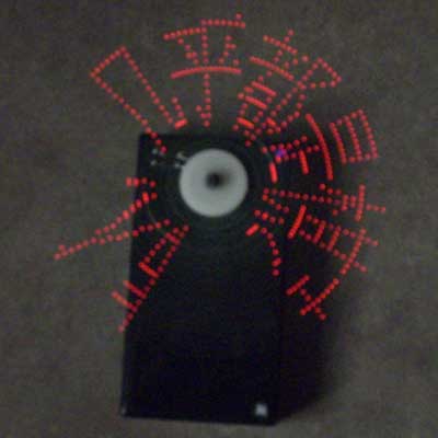 功能介绍: 1、可以静止显示多个英文或者汉字,可以滚动显示100个汉字(200个英文)的广告内容。 2、显示内容在一个平面以圆型悬空展示,四周围观的识字的人员都能读懂显示内容。 3、耗电量极小,3V、5V伏供电可选,用电池供电建议选用低电压芯片(转速较慢,会有轻微闪烁)。 4、适合商场柜台、店铺、地摊、夜市等广告展示用,也适合业余爱好者制作自我欣赏。 5、8级亮度可调,1800mah电池充一次电在适中亮度时,每天运行2小时,可以运行6天。